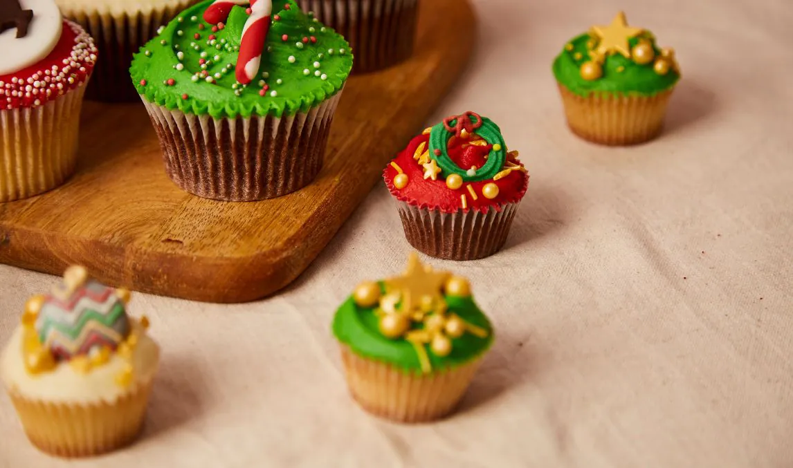 If you don’t want to spend much, a grater is the perfect way to add lemon or orange zest or grate chocolate shavings over cupcakes and cakes. Ready made Christmas sweets and candy canes are also no fuss to use.
